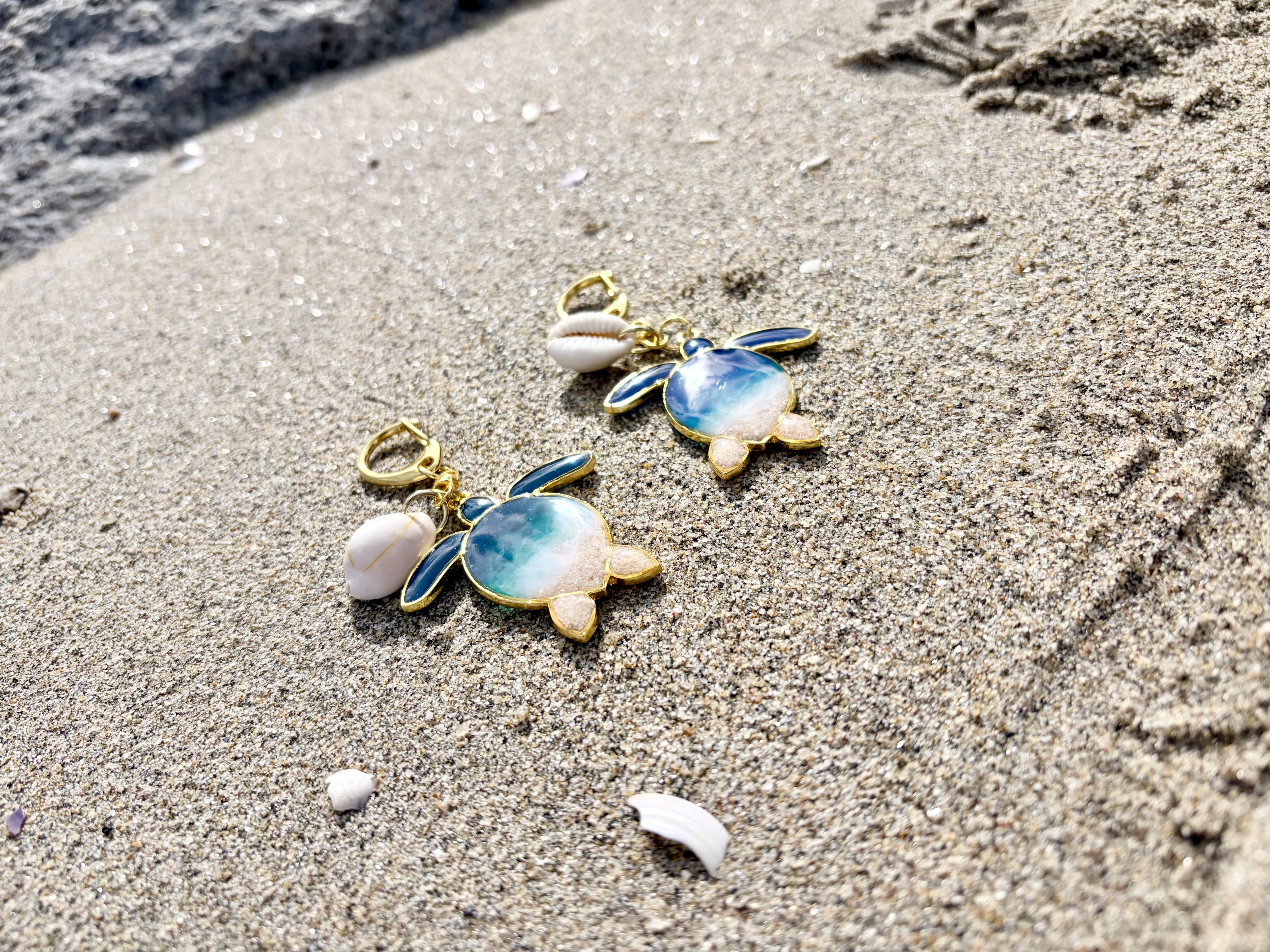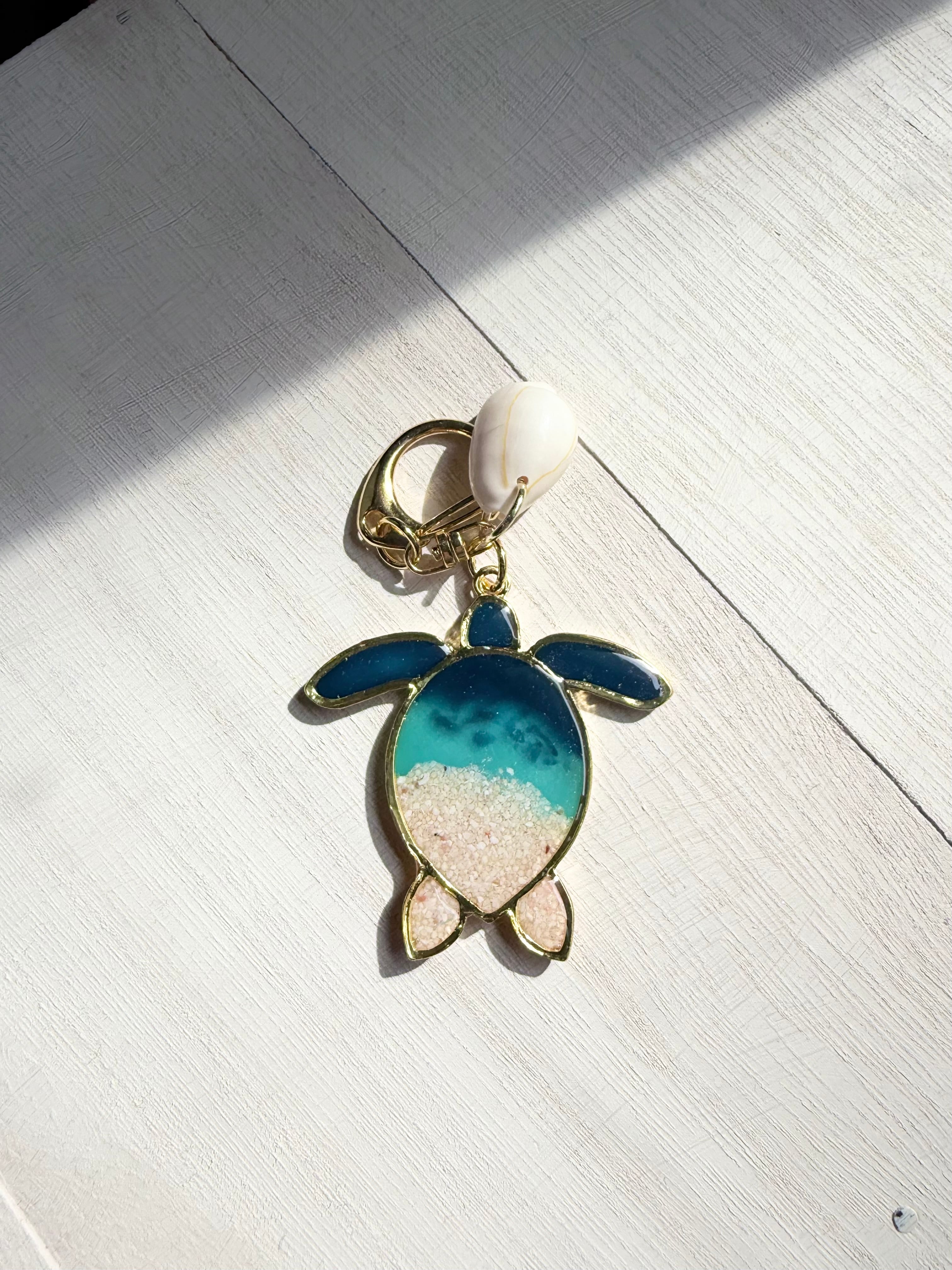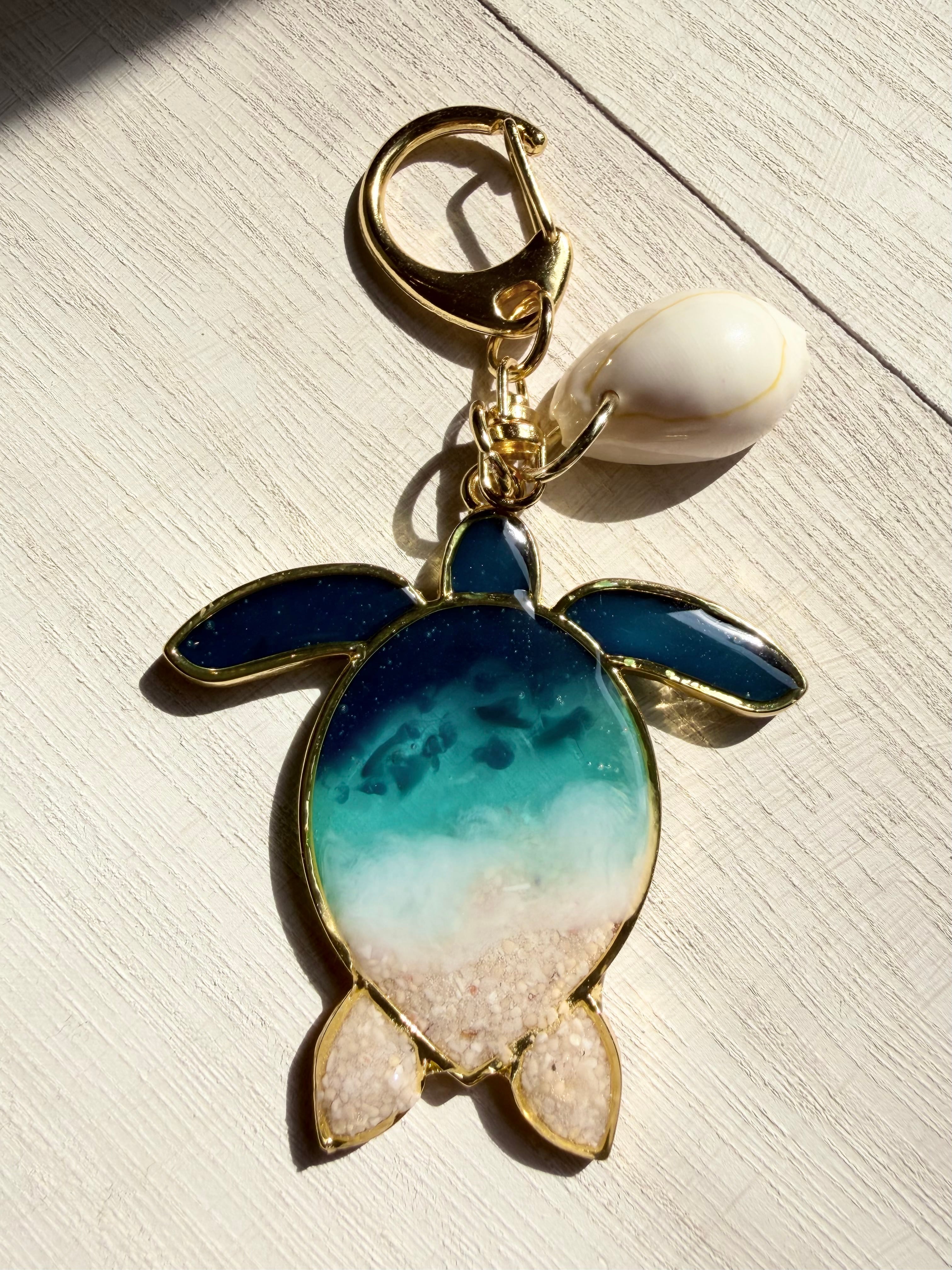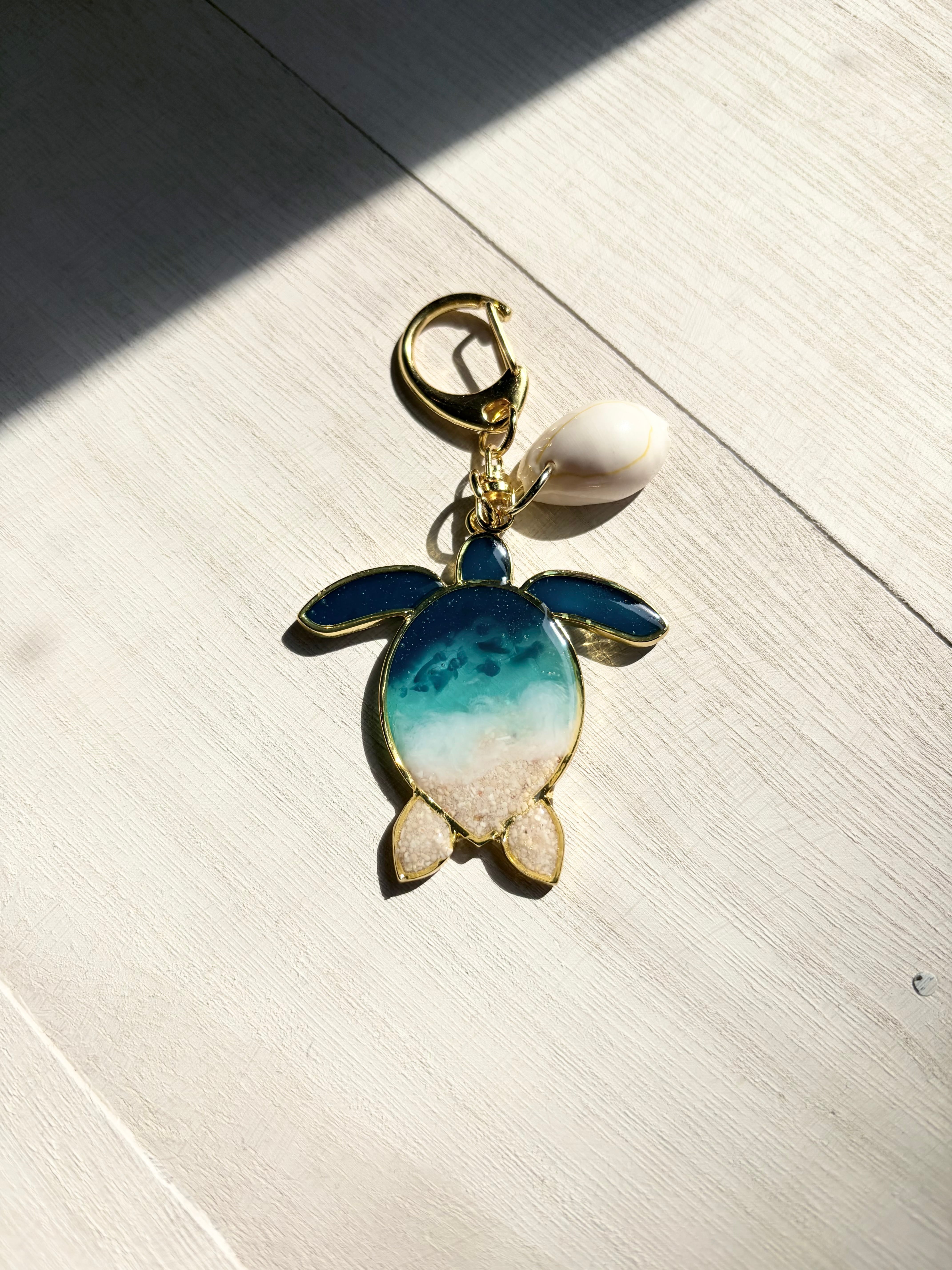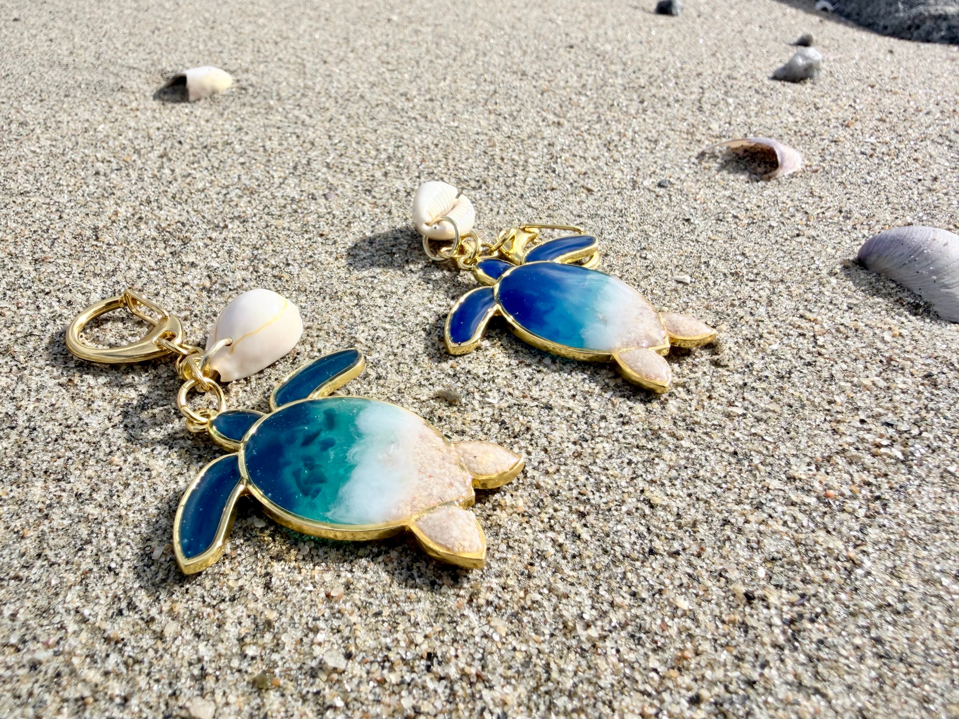 【clear sea turtle】海レジンアートチャーム 本物の海を閉じ込めた一点物アクセサリー waveocean 海を感じるレジンアート 海の癒し 海好き レジンアクセサリー ハンドメイド 海好きギフト 海アート 海アクセサリー 波のチャーム